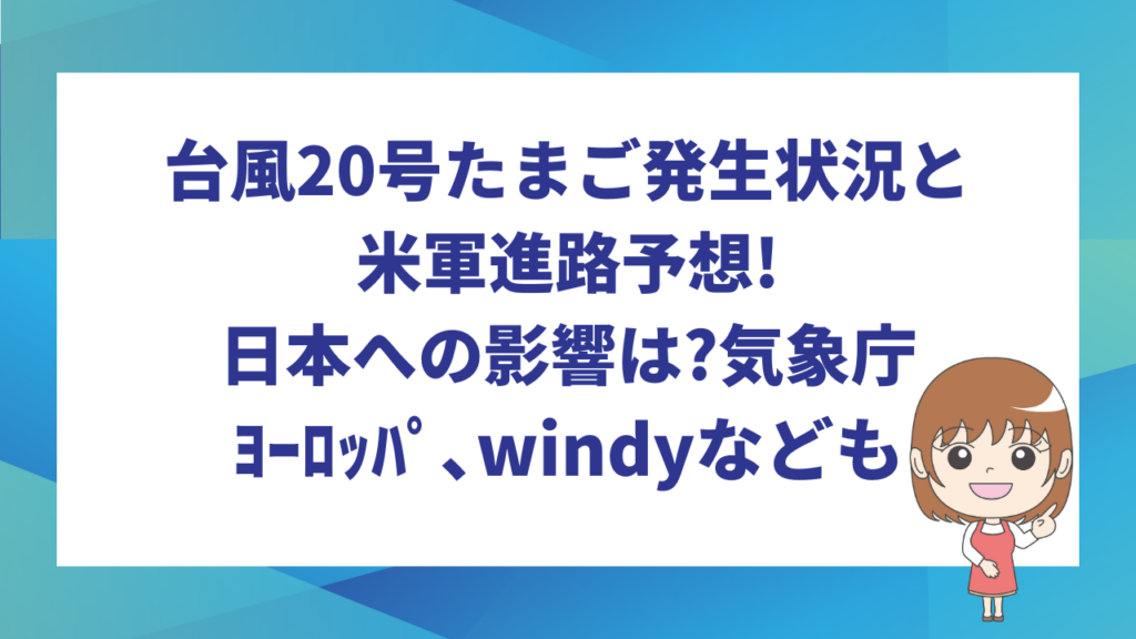台風20号の「たまご」、つまり発生状況と2025年の米軍進路予想、さらには気象庁やヨーロッパ中期予報センター(ECMWF)、Windyなど主要気象機関の見解をもとに、日本への影響について詳しくまとめてみました。家族の安全を守るためにも、最新情報と備え方をしっかりチェックしましょう。