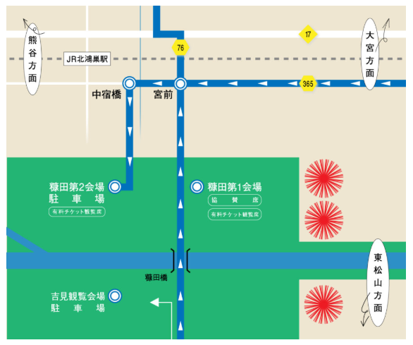 糠田橋や周辺道路が例年大変な渋滞になりますので、吉見町側からの左折入場のご協力をお願いします。