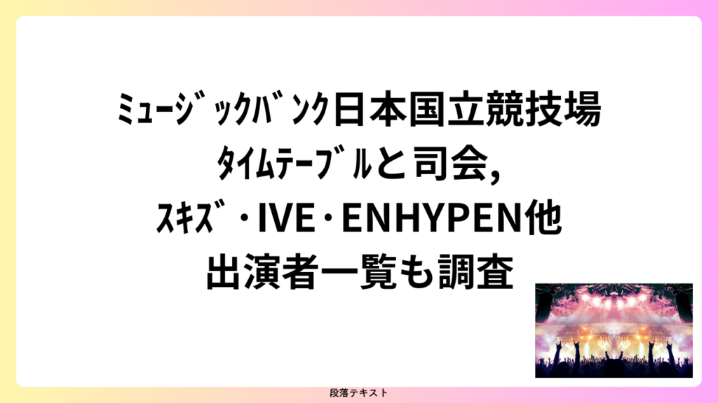 現時点では、司会者名の正式発表はありませんが、過去のミュージックバンクでは韓国と日本両方で人気の俳優・アイドル・アナウンサーが務めることが特徴。出演者同様、司会者も追加発表がありますので、公式SNSや公式HPの最新情報をこまめに確認しましょう。