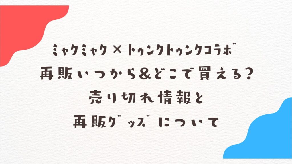 SNS上では再販決定を受けて、早くも「待ってた!」「今度こそゲットしたい」といった声が多数。前回買えなかった人たちにとって、待望の機会となりそうです。特にトゥンクトゥンクデザインのアクリルキーホルダーは初回販売時に即日完売だったため、今回も要注目です。