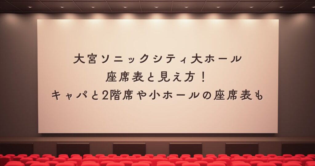 大宮ソニックシティは大キャパながら見やすさ・音響・アクセス全部優秀。1階・2階の段差や座席配置は観る人の立場で工夫されているので、遠征や親子観劇でもきっと満足できます!