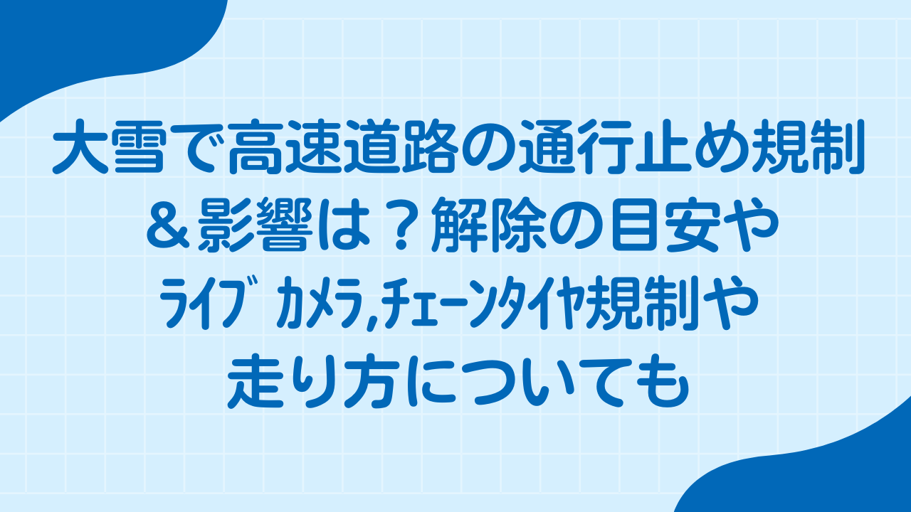 大雪で高速道路の通行止め/規制&影響は?解除の目安やライブカメラ,チェーンタイヤ規制や走り方についても