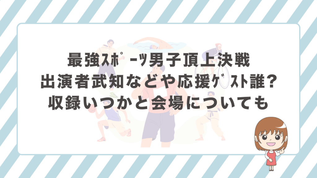番組収録を兼ねた本イベントは、TBSチケットによる観覧席抽選が行われており、例年多くの応募が集まります。今年も2025年11月18日(火)に有明アリーナ(東京)で開催予定。過去春大会(5月放送)の収録も同会場で行われていることから、“スポ男=有明”の定番化が進んでいます。