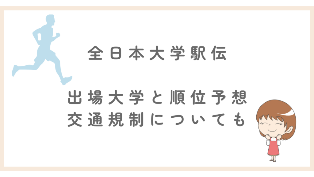 2025年11月3日に開催される全日本大学駅伝。毎年ワクワクしますよね!今年の出場校一覧や順位予想、そして沿道応援やお出かけ予定の方が気になる交通規制情報などをまとめてみました。家事やお買い物の合間にぜひチェックしてみてください♪