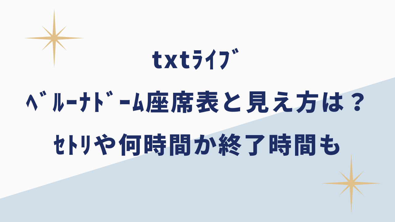 いよいよTXT(TOMORROW X TOGETHER)の2025年日本公演、ベルーナドームでの開催が迫ってきました。アリーナ構成や座席表が気になる方も多いはず。この記事では、座席の見え方やライブ時間の目安、セトリ傾向までまとめてみました。