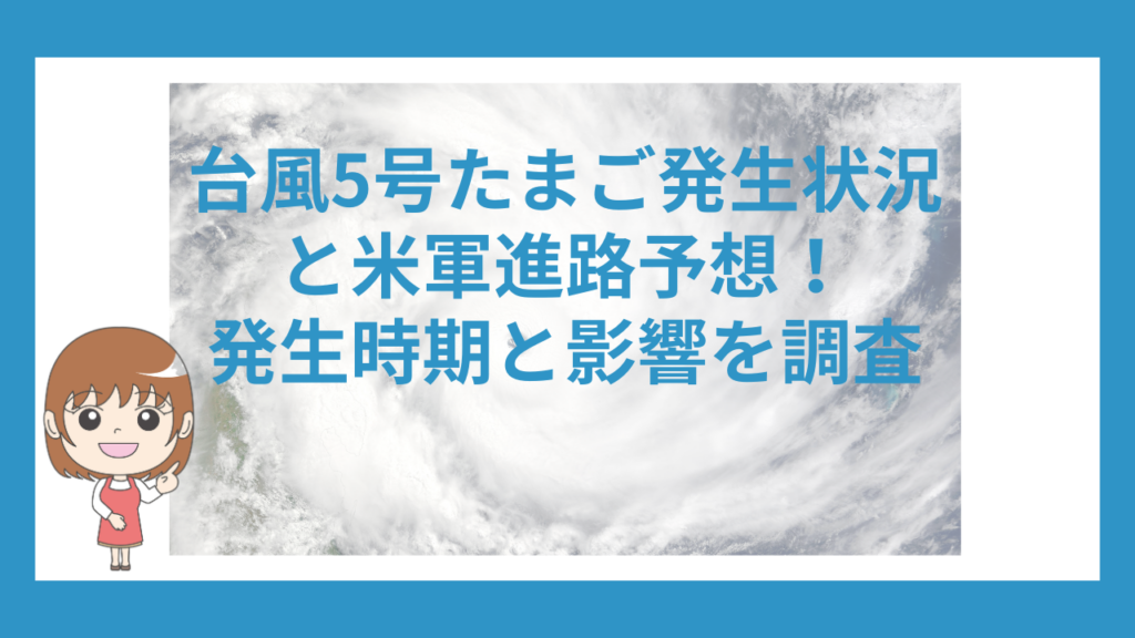 現時点で確認できる情報では、2026年4月13日時点で「台風5号になりそうなたまご」は発生していません。台風のたまごは急に発達するので、日々チェックが大事ですね。また、台風5号に関する過去の発生例を見ると、台風は小笠原近海や日本の南の海上で発生して、数日後に関東や東北へ近づくケースがありました。そのため、台風5号の発生時期を考えるときは、まず南の海上で熱帯低気圧ができるかどうか、そしてその後に北上する流れがあるかを見るのがポイントです。